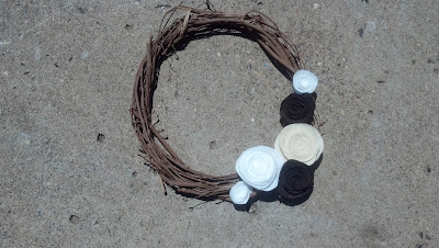 Kelly decorated this wreath from the dollar store with felt flowers that she made. Got the inspiration here.